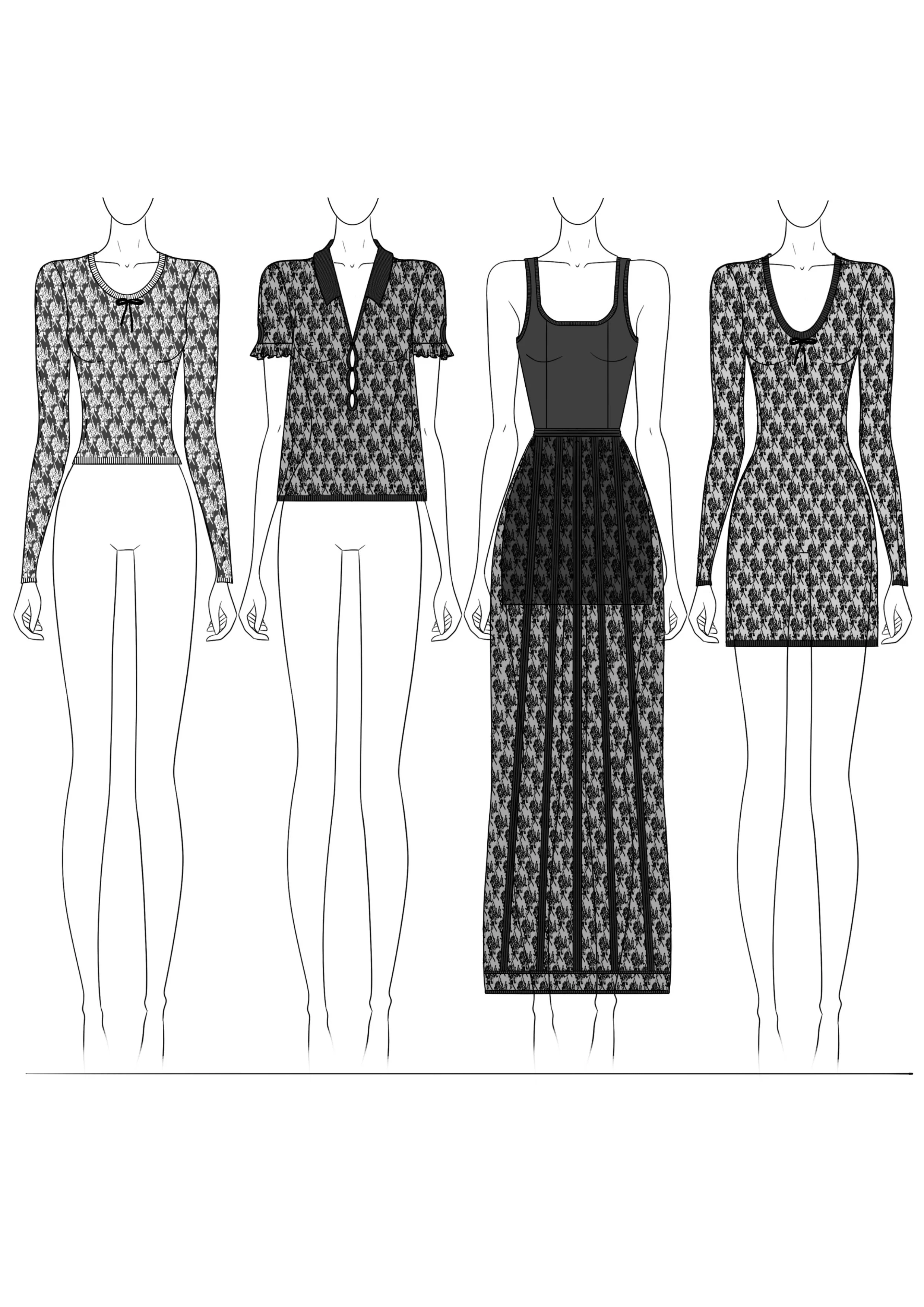 The idea was to spin around the 2000' rock esthetism of the new artistic direction while keeping a touch of puritanism. The tights is recurrent in our research images.